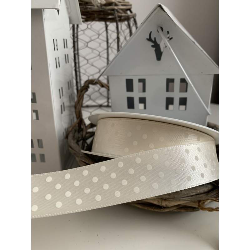 Nastro Satin Color Panna con Pois Bianchi Altezza 25 mm