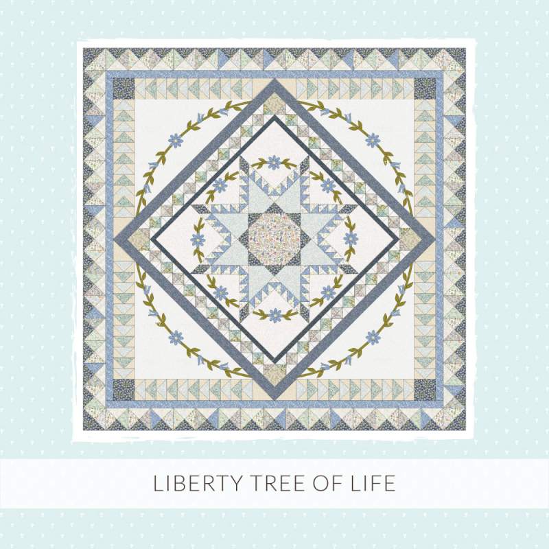 Cartamodello per realizzare il quilt Liberty Tree of Life. La trapunta misura 89" x 89" bordi inclusi, circa 226 x 226 cm.