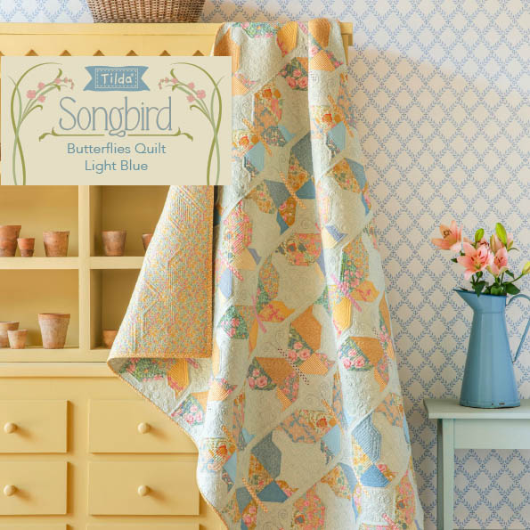 Questa è una trapunta davvero facile, ma così gratificante da realizzare con i meravigliosi tessuti Tilda. È realizzato da semplici blocchi quadrati composti da due triangoli utilizzando i tessuti delle collezioni Gardenlife e Chambray. I tessuti stanno insieme armoniosamente e sono disposti in modo da formare piacevoli motivi diagonali attraverso la trapunta. I tessuti Gardenlife sono così belli, con una ricchezza di dettagli botanici nei disegni, che rendono ogni tessuto un piacere da usare.