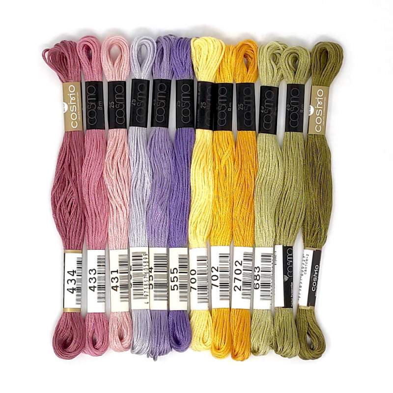 Bundle formato da 12 filati Cosmo moulinè a 6 capi, 100% cotone.