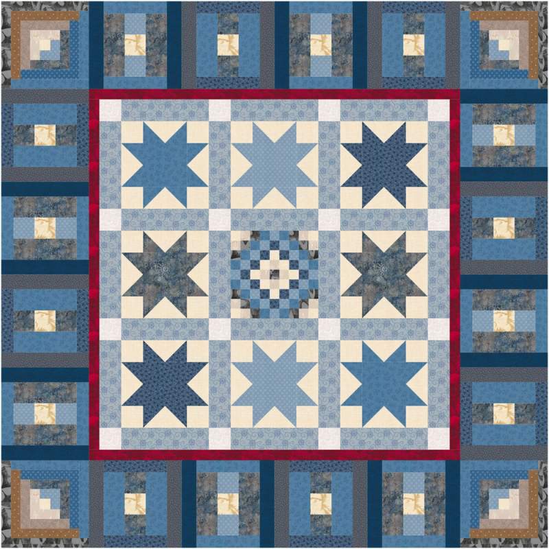 Realizza questo bellissimo quilt patchwork sui toni del blu! Questa trapunta è stata ideata per essere alla portata delle principianti, ma ha qualche sfida anche per le più brave quilters. I colori lo rendono perfetto anche per una trapunta da uomo, non a caso è il quilt del Sig. Silvio!