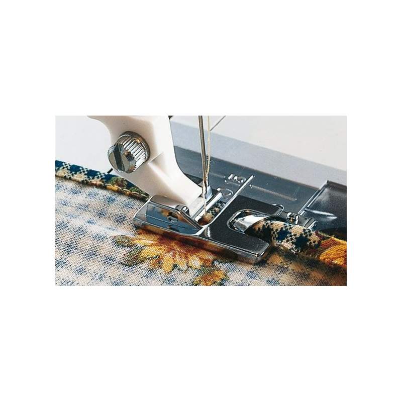Il piedino per trapuntare a mano libera (free motion) è studiato per darti un maggior controllo durante la trapuntatura. La base larga garantisce una buona superficie di contatto con il tessuto e fornisce un maggior controllo della cucitura. La base trasparente consente una visibilità a 360°. I contrassegni verticali, orizzontali e circolari sul piedino permettono di seguire facilmente un linee di trapuntatura disegnate sul quilt o un disegno del tessuto. Cuci linee diritte o segui motivi con bordi arrotondati in qualsiasi direzione.