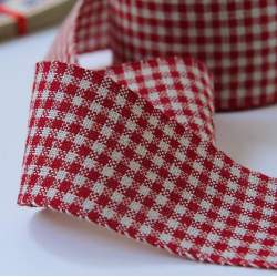 Banda in Puro Lino 100% rosso ed ecru a quadretti.