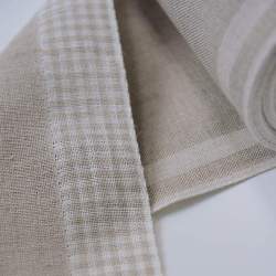 Banda in Puro Lino 100% con banda e motivo a quadretti bianchi tessuti sul bordo, 11 fili.