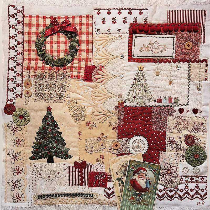 Pannello da ricamare a Slow Stitching a tema Natale. Dimensioni circa 50 x 55 cm.
