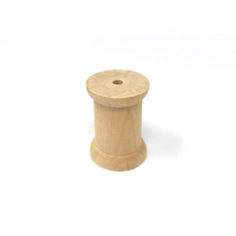 Questo rocchetto è alto 4.3 cm con un diametro massimo di 3 cm. Il foro interno ha un diametro di 5 mm.