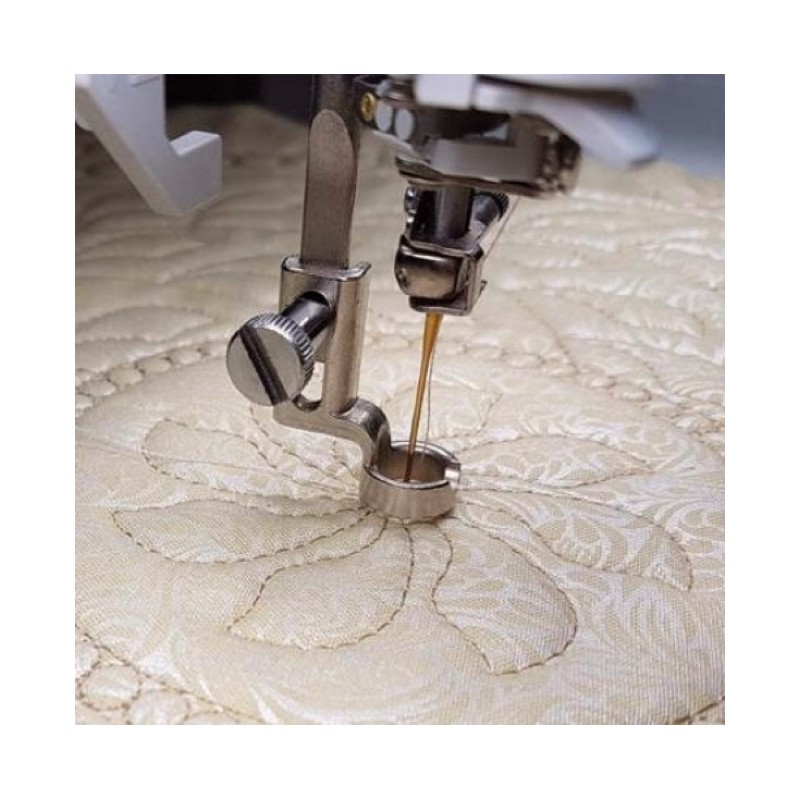 Il piedino per trapuntatura per macchine domestiche consente di eseguire trapunte a mano libera su qualsiasi macchina da cucire domestica. Sono disponibili 4 tipi di piedini domestici che coprono la maggior parte delle macchine oggi sul mercato.