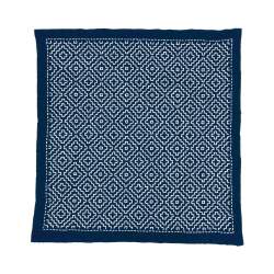 Kit con tessuto stampato con disegno da ricamare a sashiko con la tecnica Ichimoku Sashi, che prevede il ricamo dello stesso schema realizzato in verticale, orizzontale e diagonale per riprodurre il disegno. La stampa scompare con il lavaggio.