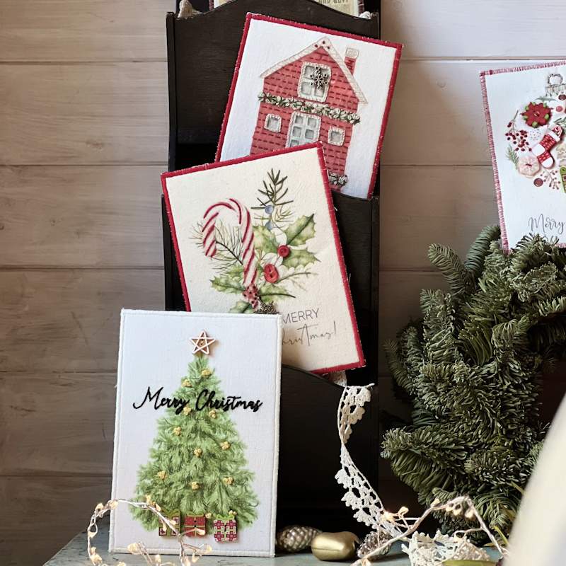Kit per realizzare 3 cartoline tessili Natalizie.