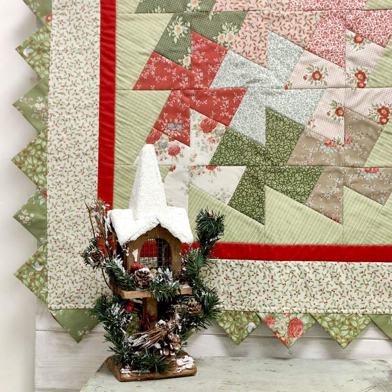 Kit di tessuti con istruzioni passo passo per realizzare un divertente centro tavola con girandole Twist come quello mostrato. E' stato realizzato con la collezione Tilda Merry Little Christmas di Natale. Questo progetto necessita della squadretta Twist'n Stitch di June Tailor.