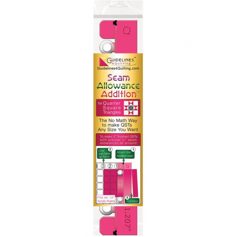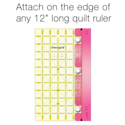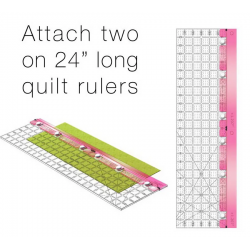 Questa guida, grazie alle ventose, si aggangia a qualsiasi riga. Ti basta posizionare il tessuto esattamente alla misura del quadrato finito, tutta la matematica la farà la guida aggiungendo esattamente il margine di cucitura corretto. I tuoi quadrati composti saranno precisissimi!