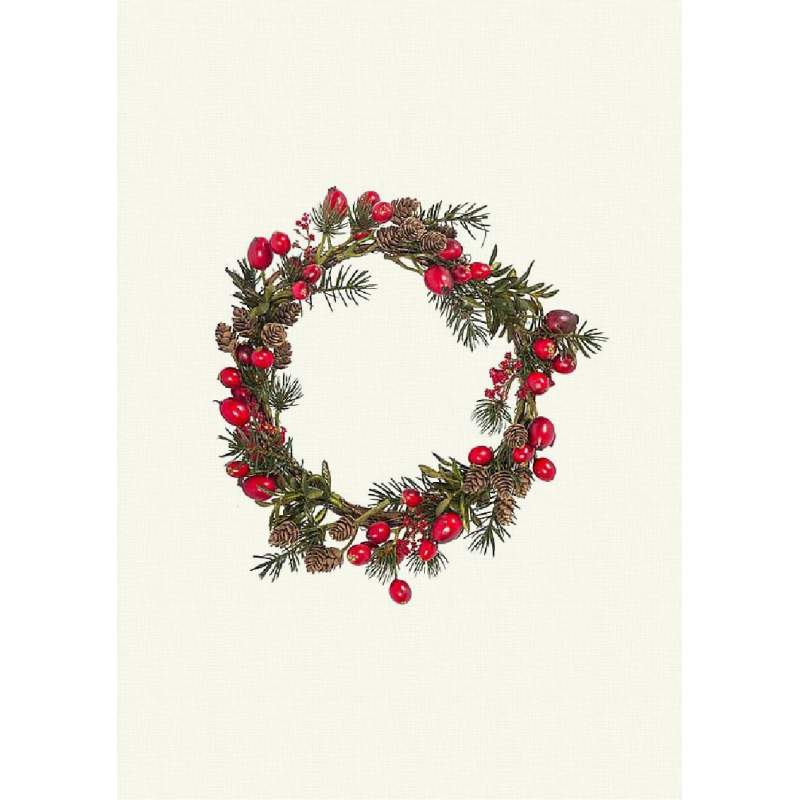 Ghirlanda di Natale con Grandi Bacche Rosse- Stampa su Tessuto