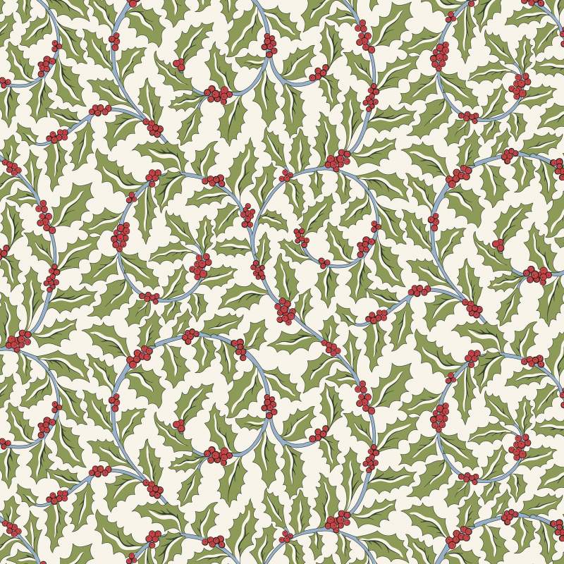 Tessuto stampato della collezione Festive Greetings di Liberty Fabrics per il Natale.