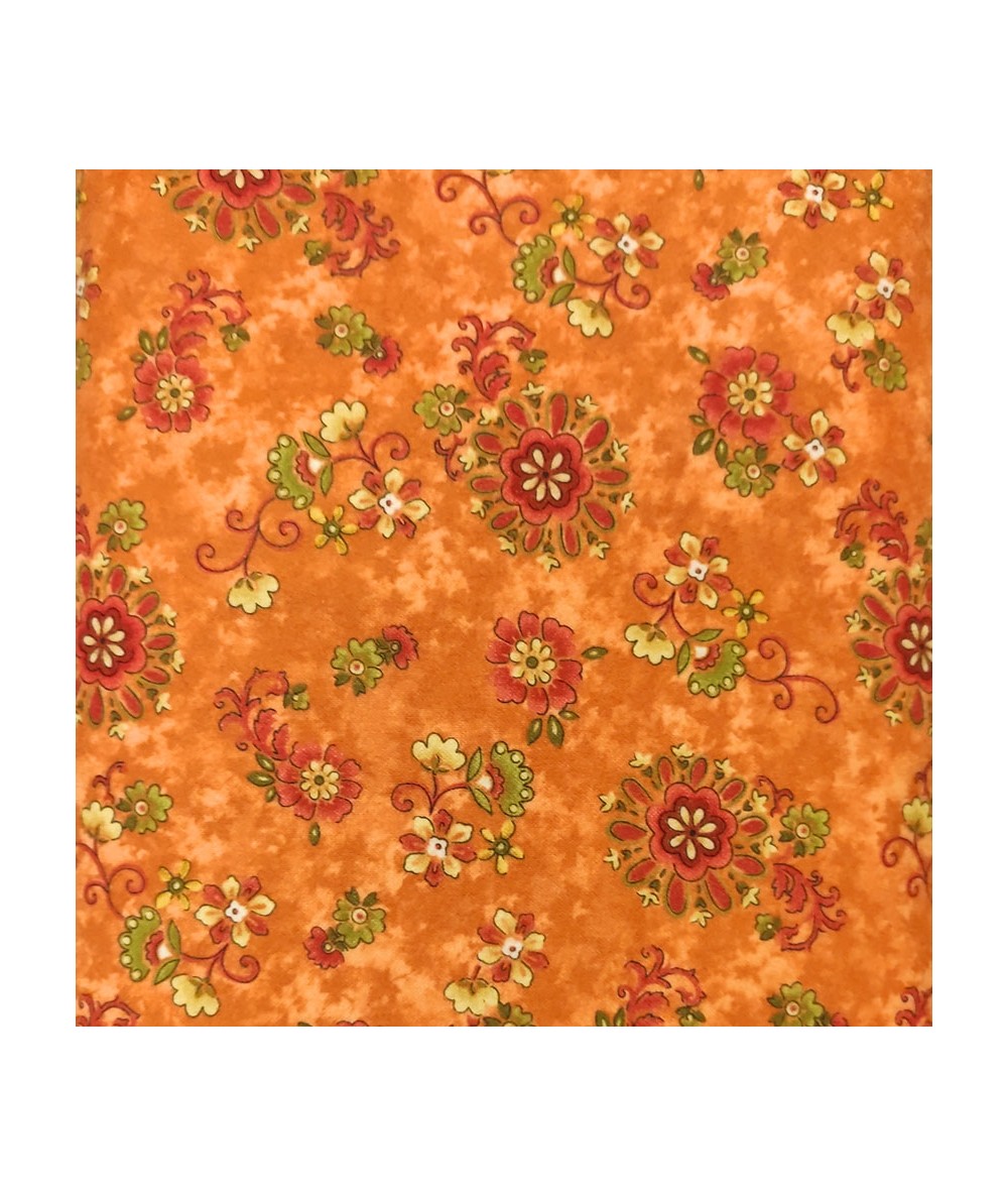 Flannel Essentials 7, Tessuto Flanella Arancione con Fiori by The Buggy Burn per Henry Glass